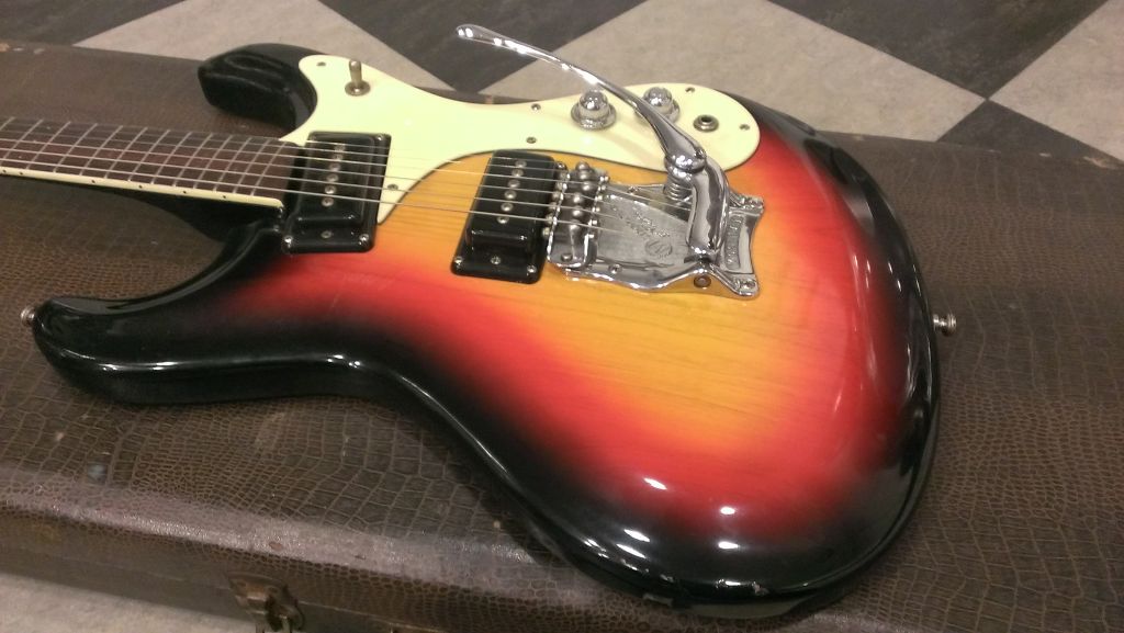 1966 Ventures Mark I, sunburst, ohsc. $3,000. Shipping included in USA, extra elsewhere based on locale.