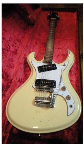 a cream Tokai Humming Bird, the one with the curved horn.