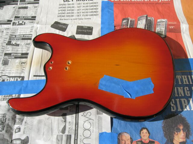 First a picture of the back of the guitar as I got it. I taped over the control cavity to protect the electronics.