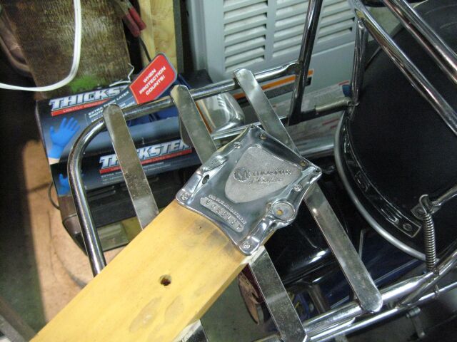 While I was waiting for the paint to arrive, it was time to brighten up the moseley plate. I had buffed it with a demel, but wasn't able to get a real shine to it, so a friend who restores vintage scooters (lots of polished aluminum) offerred to help me get it together.